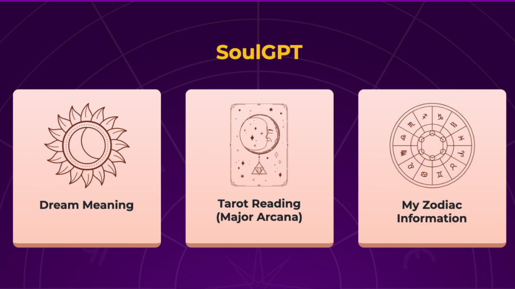 SoulGPT understands the importance of respecting individual preferences. While it specializes in Tarot card readings, SoulGPT acknowledges that dream meanings and astrology might be of interest to some users. Should you express curiosity about these topics, you can choose the desired option from the initial menu.